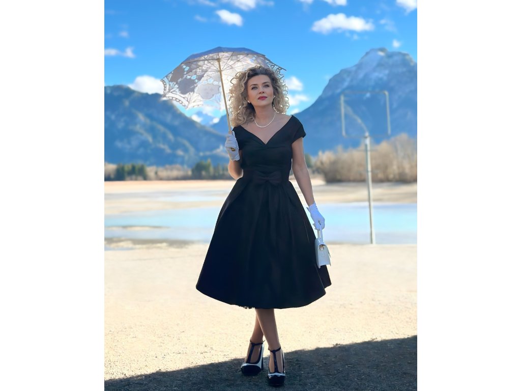 - Bavlněné černé retro šaty Lily od značky Dolly & Dotty