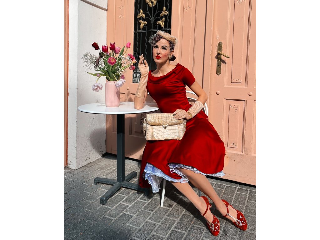 - Vínově červené bavlněné retro rockabilly šaty Darlene od značky Dolly and Dotty