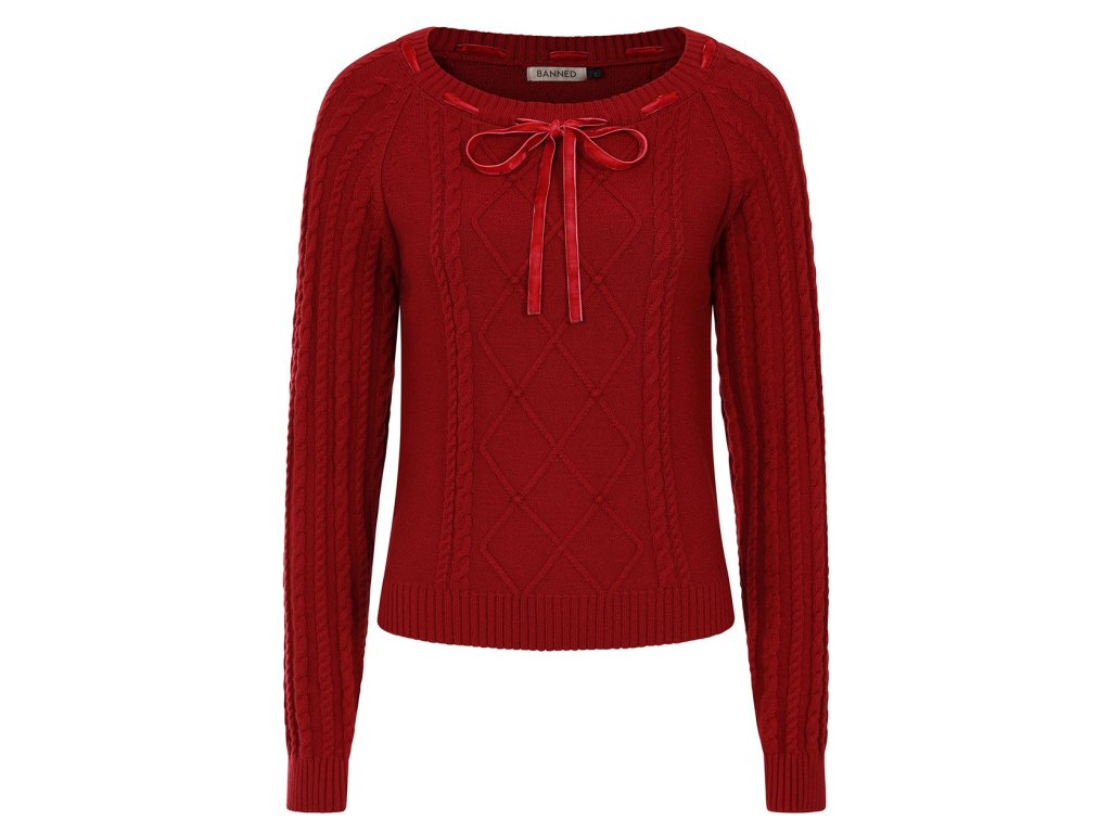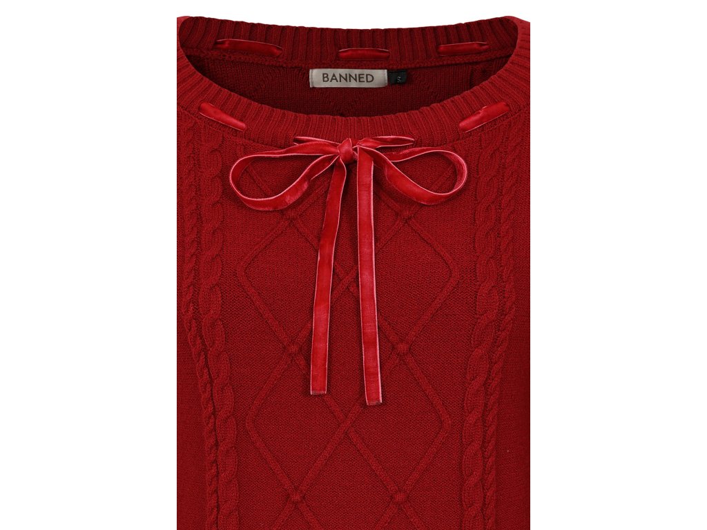 - Mona red knitted 40's style jumper by Banned Retro