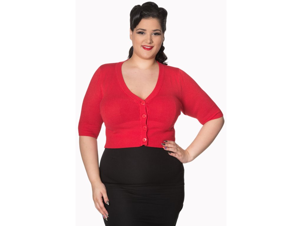 - Red cropped Sweet Dreamer cardigan by Banned Retro