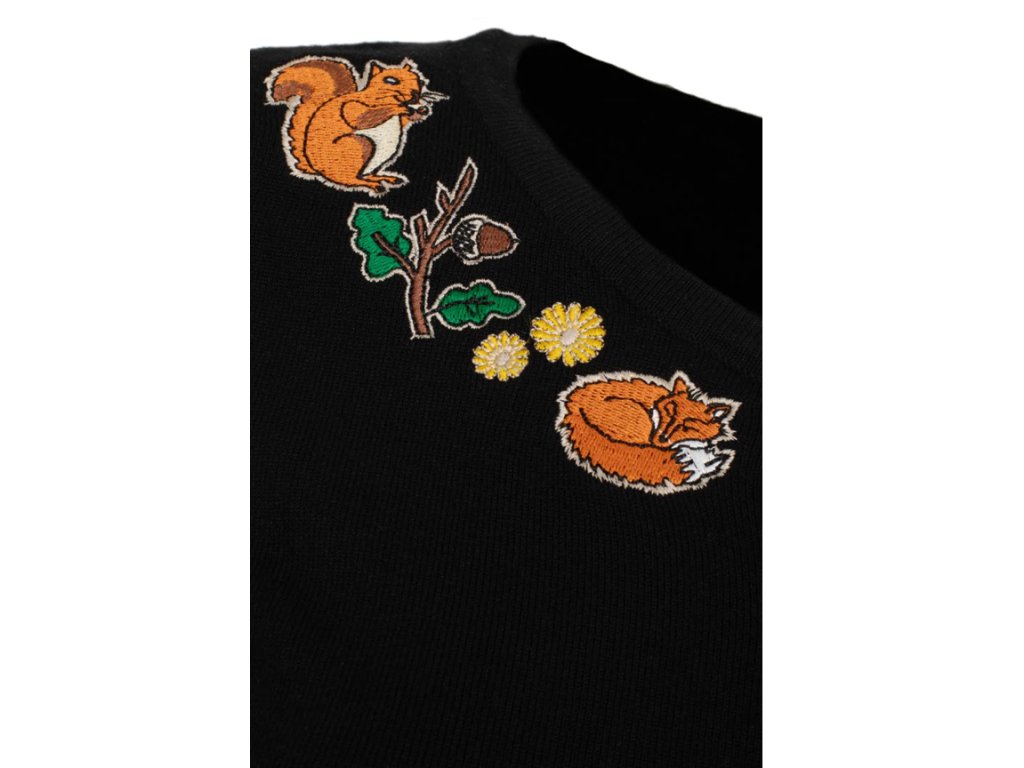 - Autumnal embroideries featuring squirrel, fox, acorn and yelllow florals