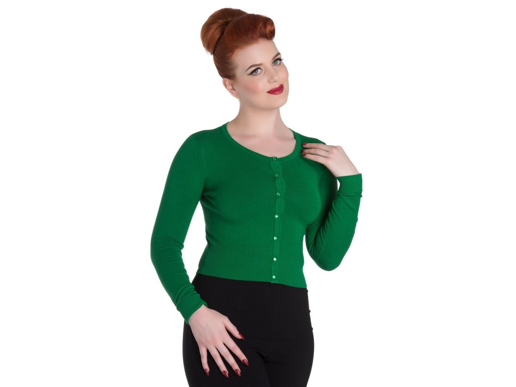 - Green knit cropped Paloma cardigan by Hell Bunny