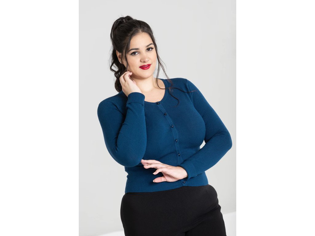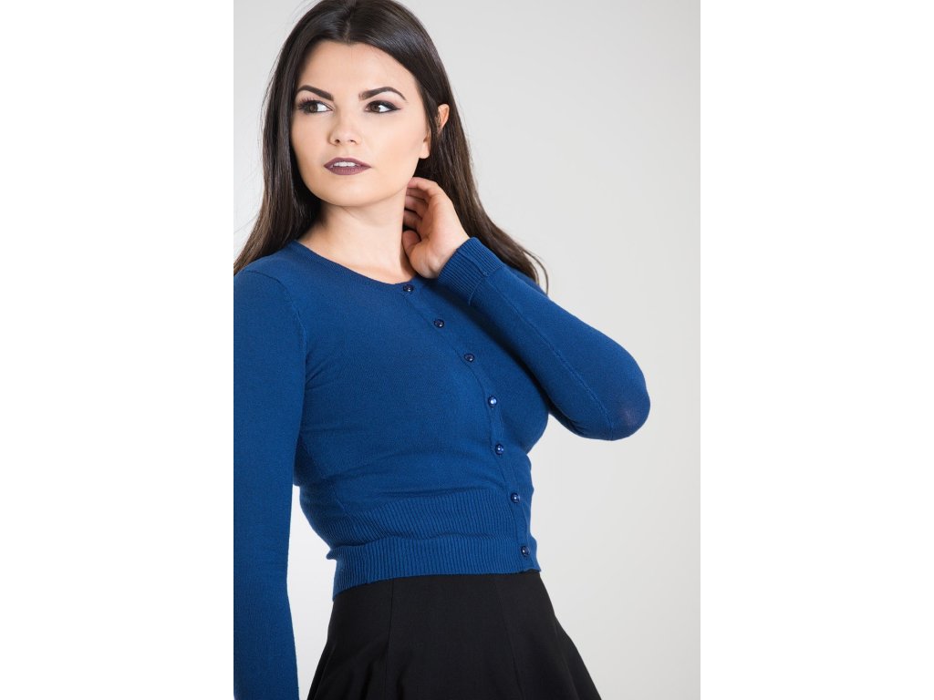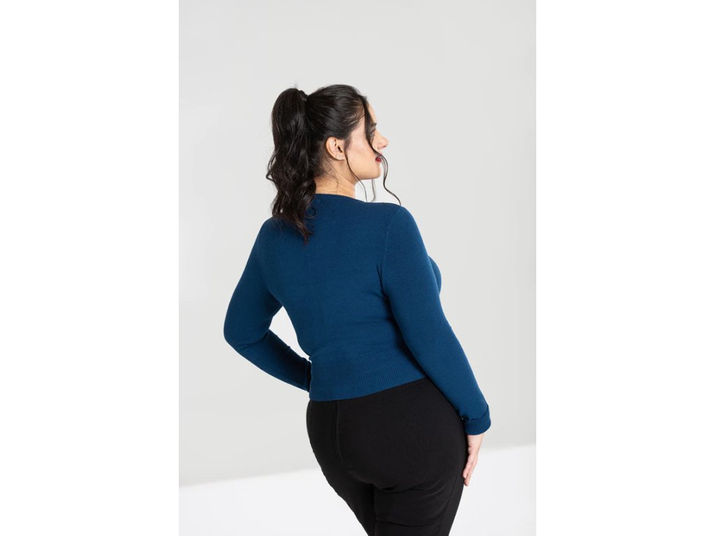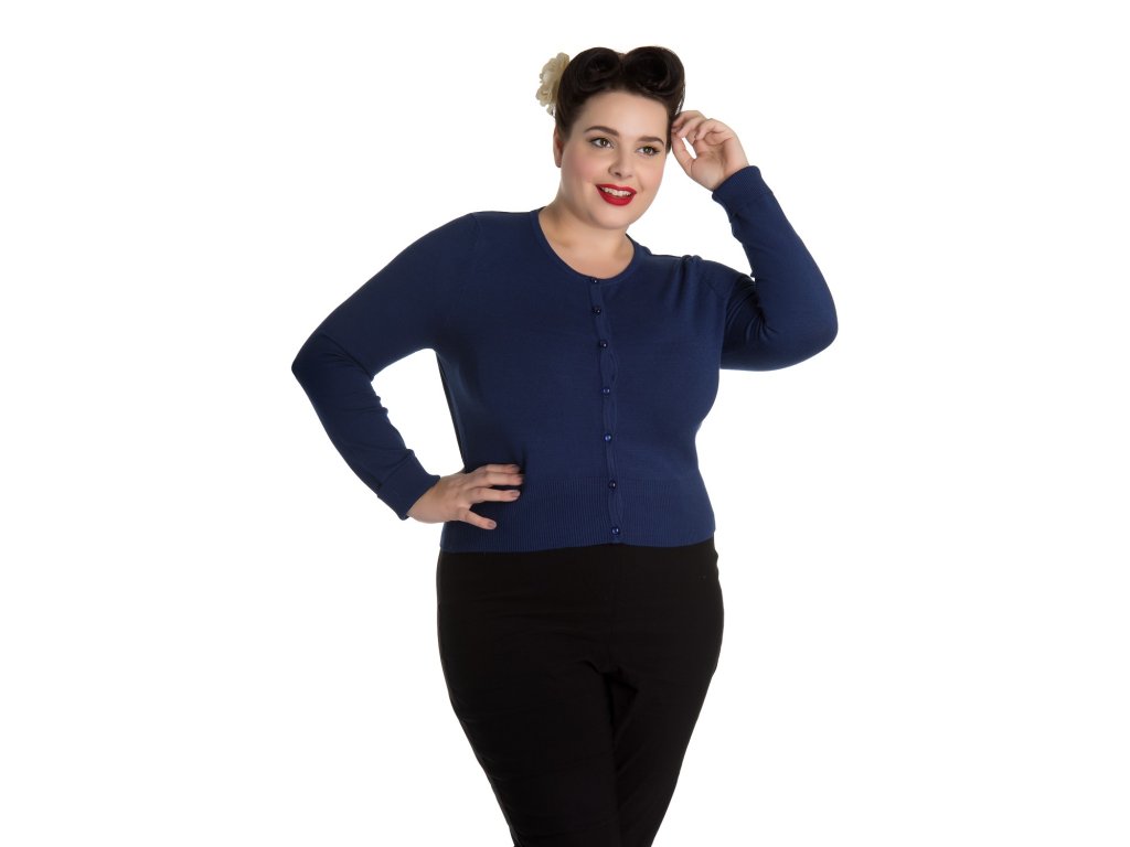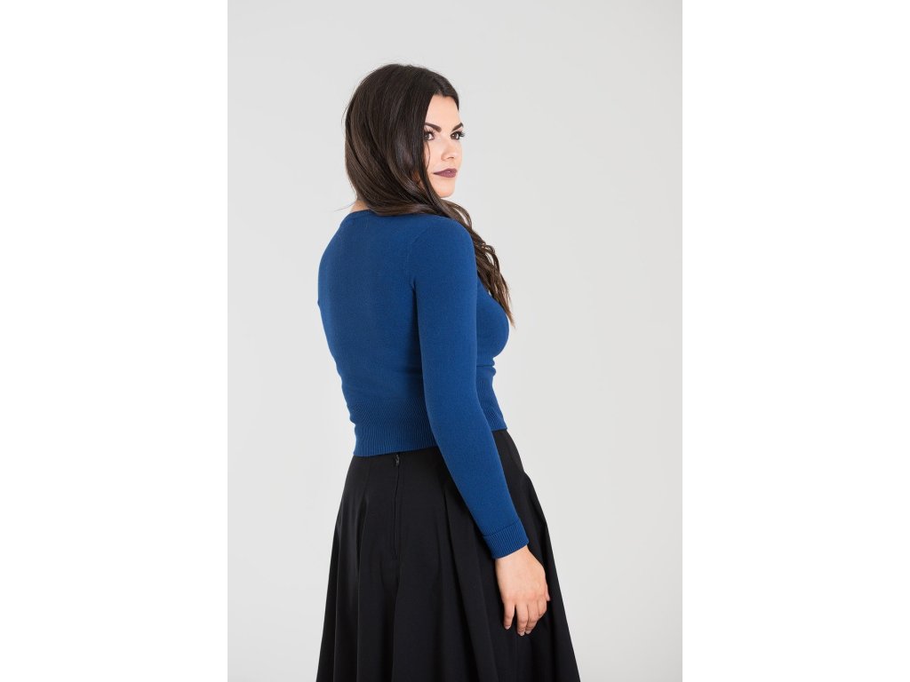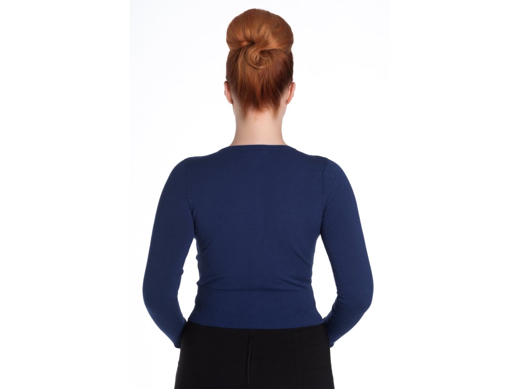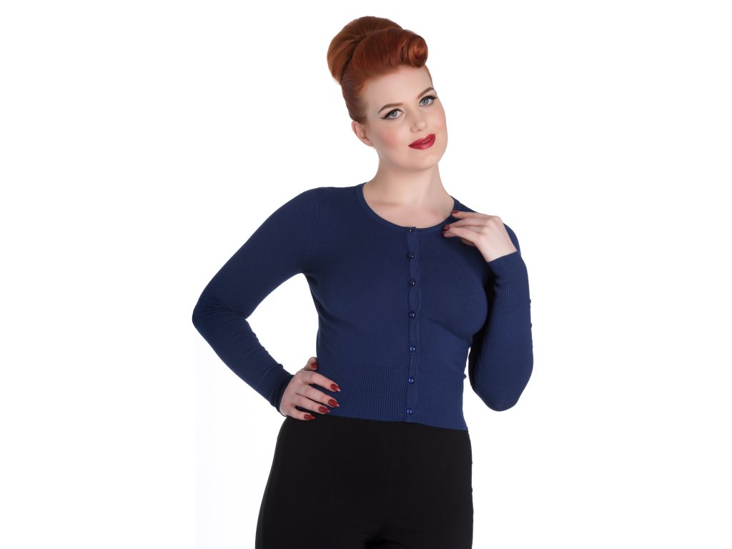 - Navy blue knit cropped Paloma cardigan by Hell Bunny