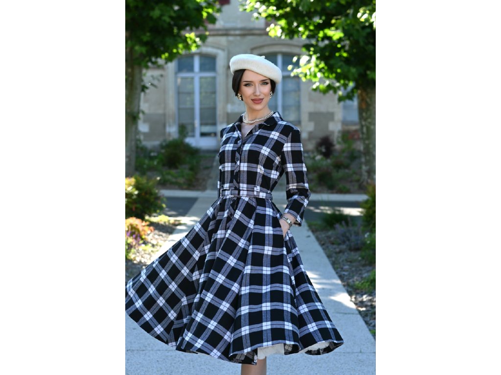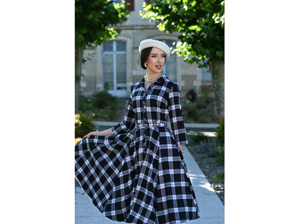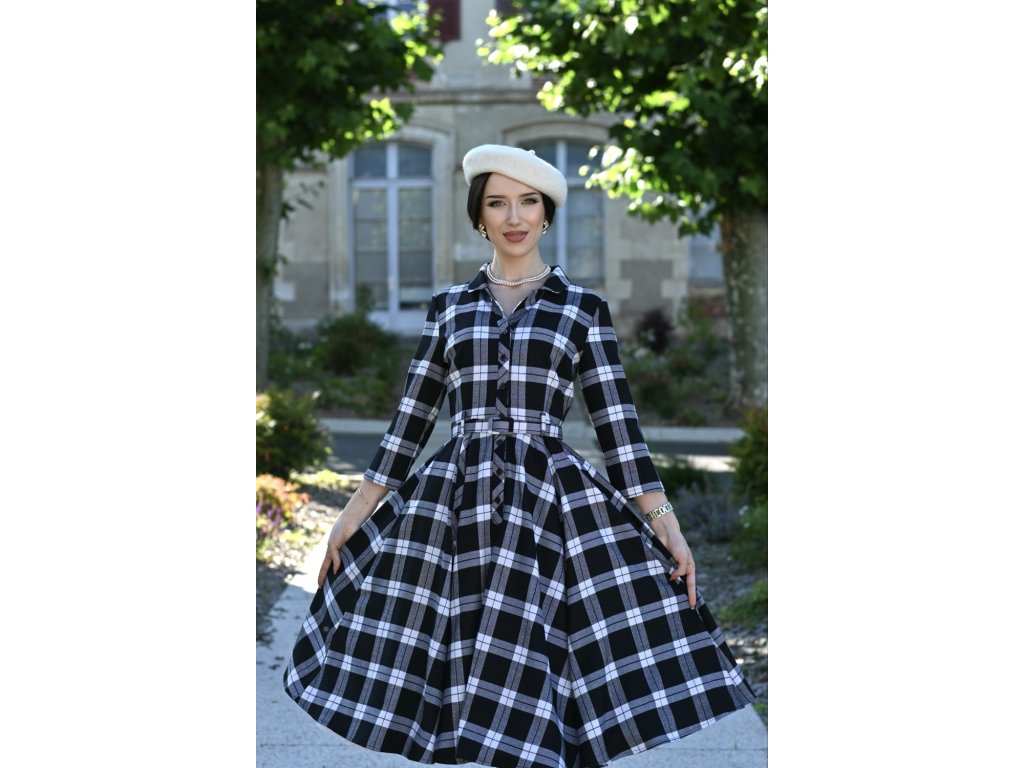 - Black and white tartan swing dress, Lacey by Hearts & Roses London