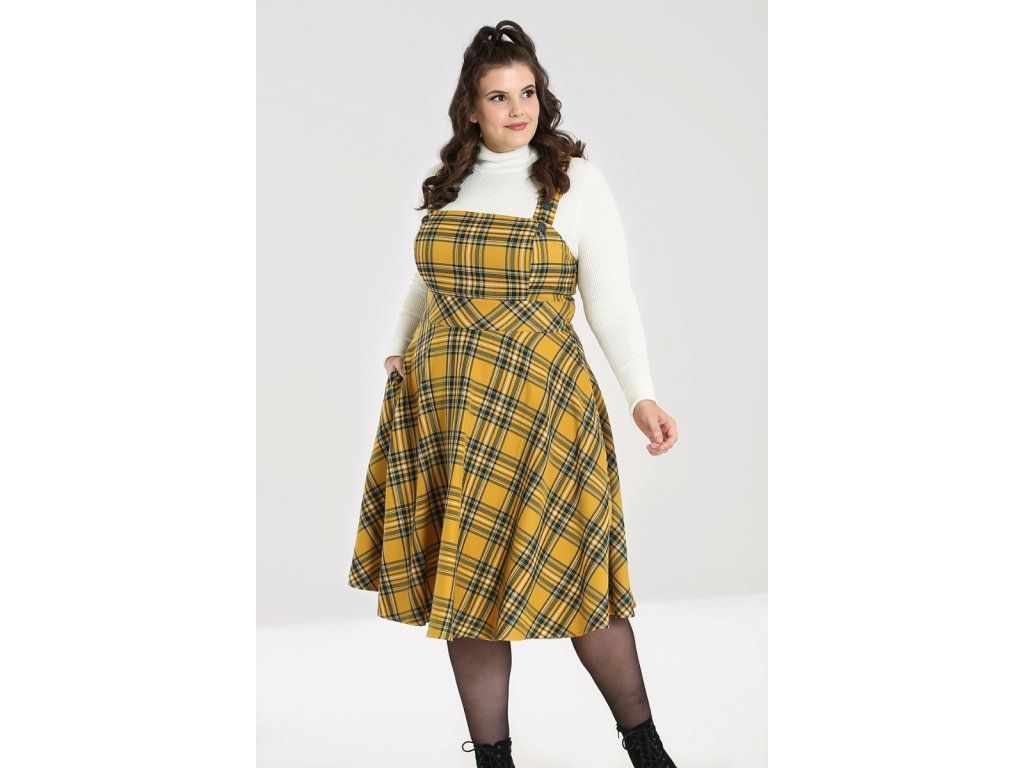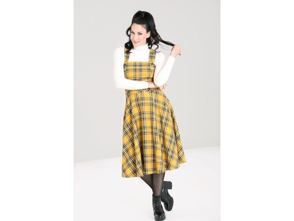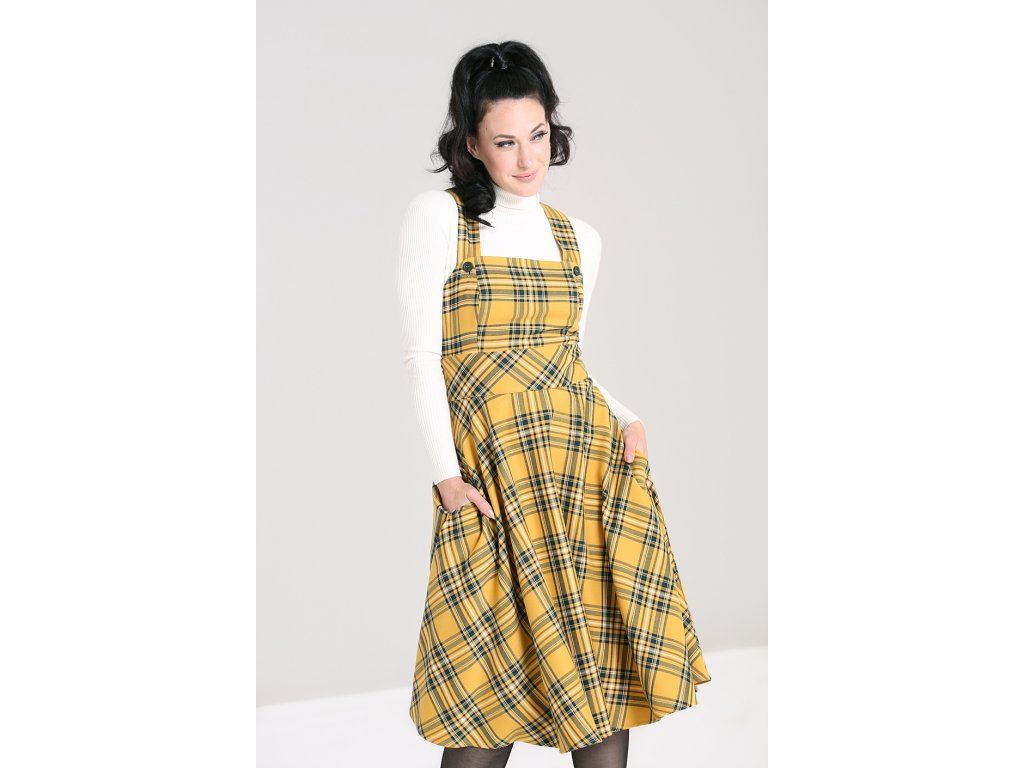 - Mustard tartan Wither pinafore dress by Hell Bunny