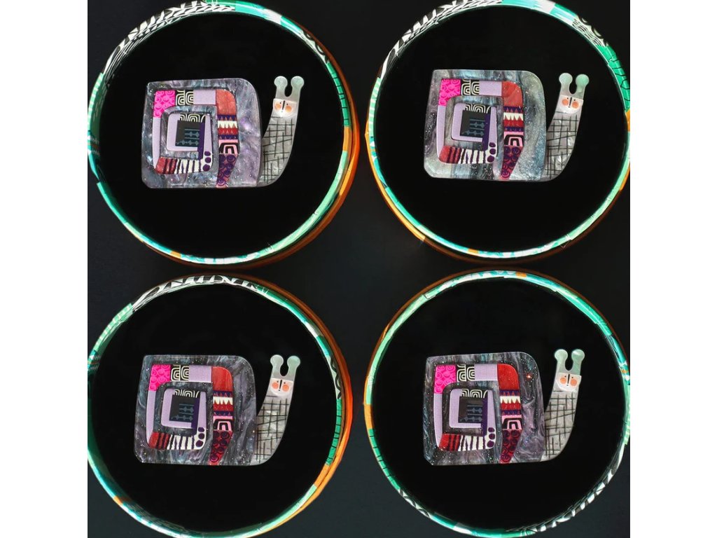 - Erstwilder brooches are made from hand-mixed resin of different textures
