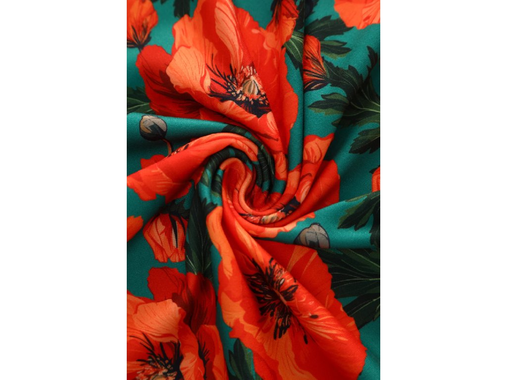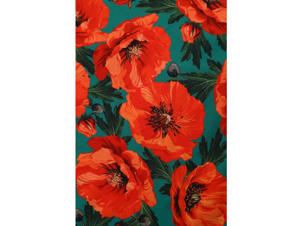 - Charming poppy floral print set against a rich teal background