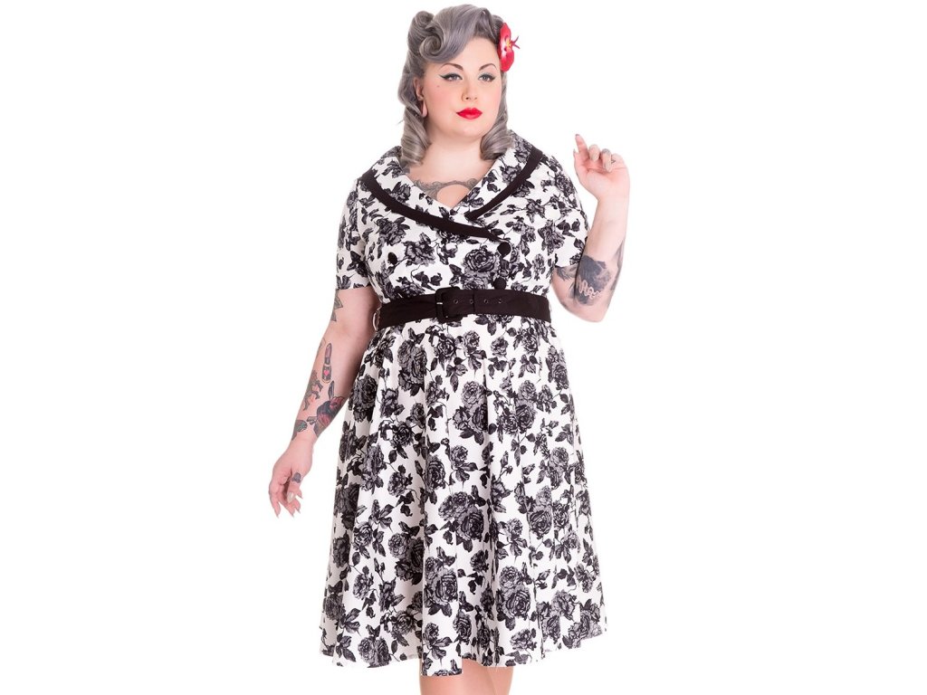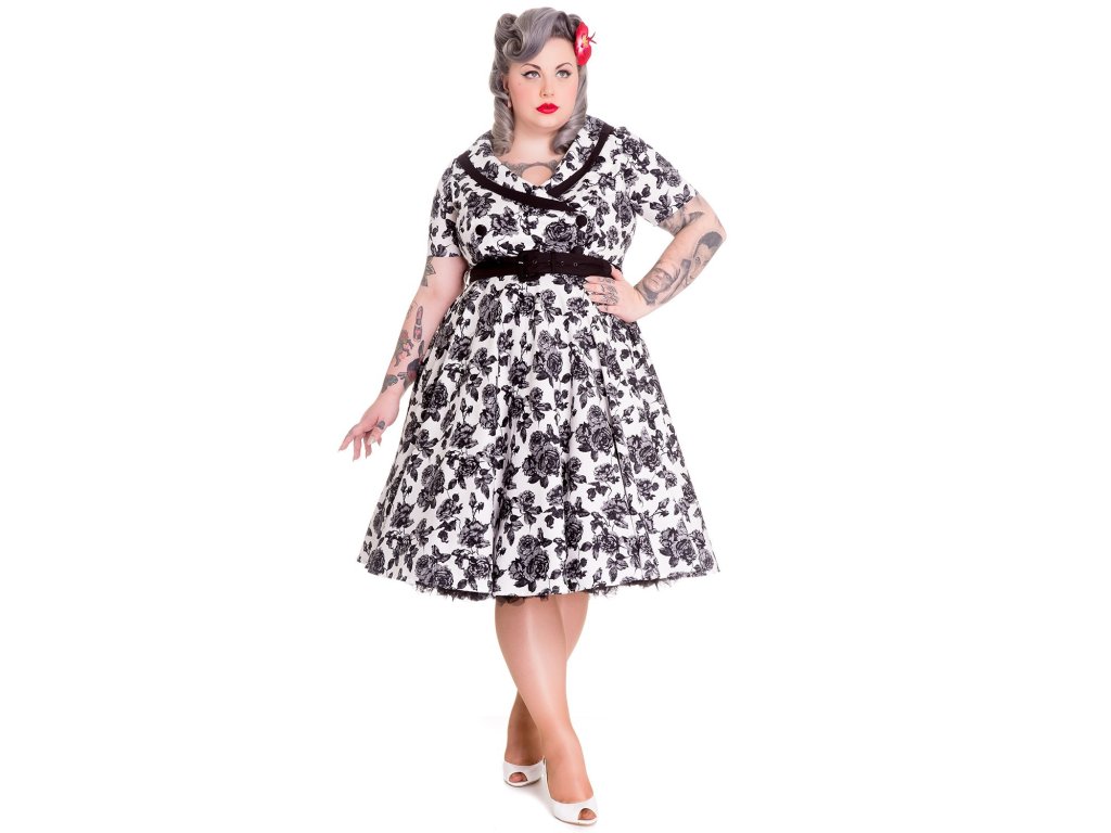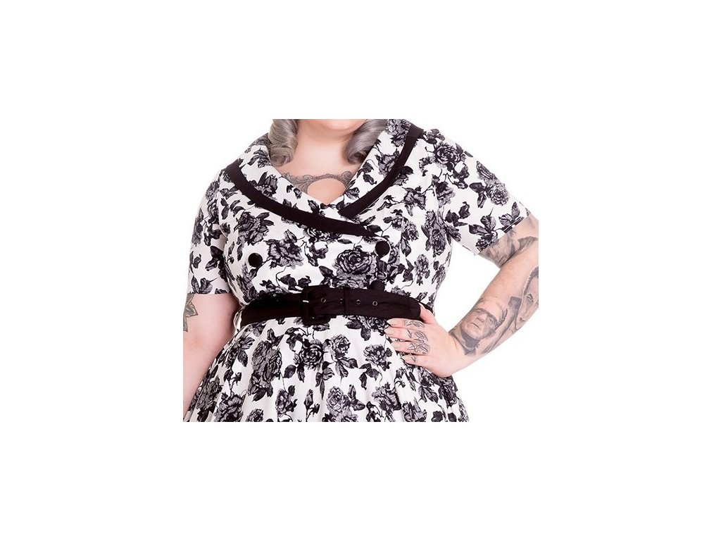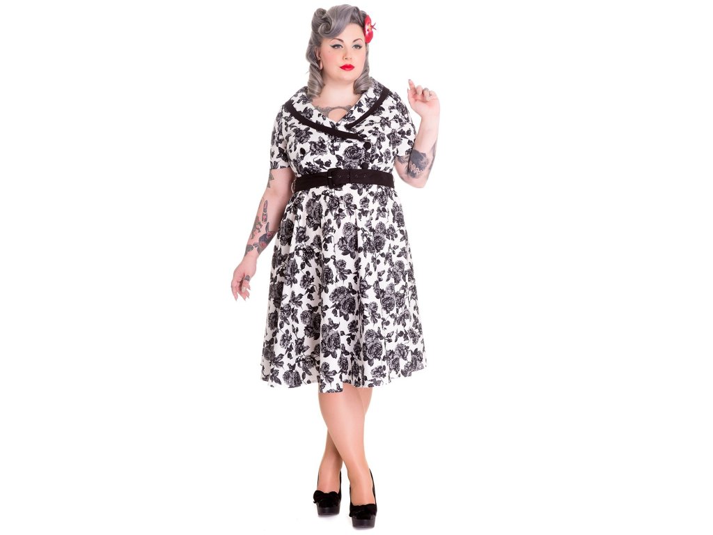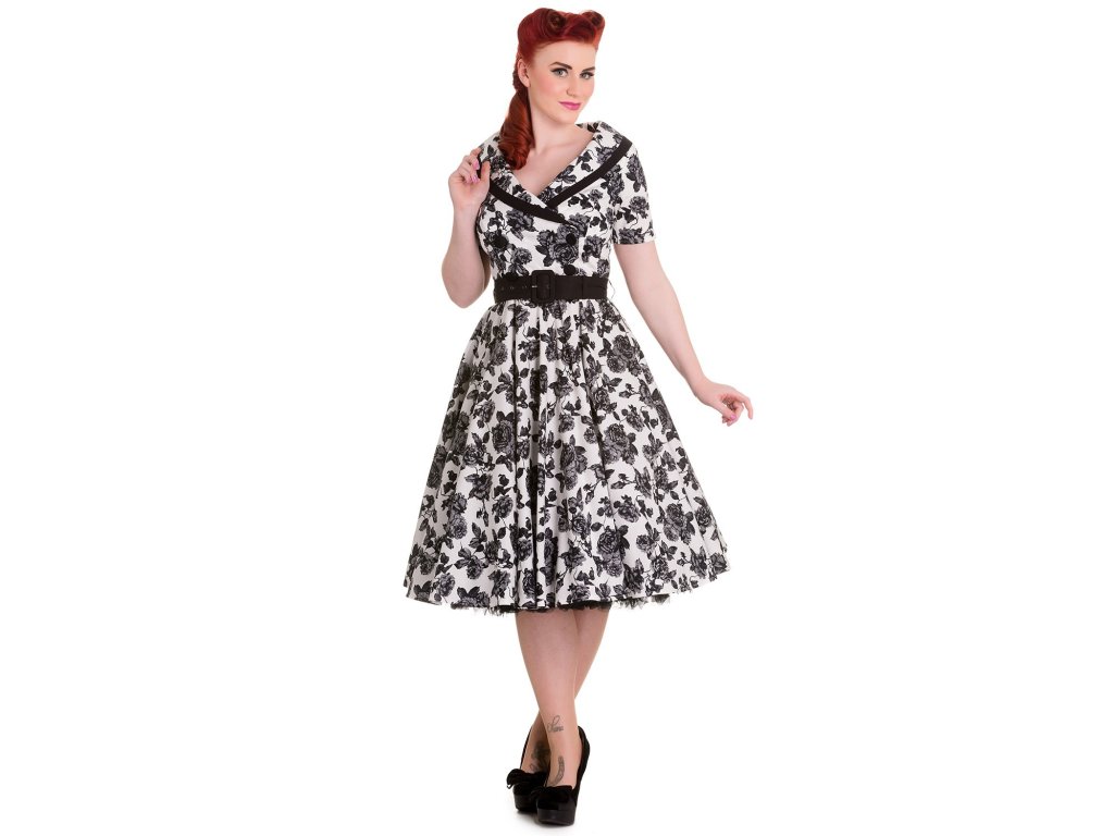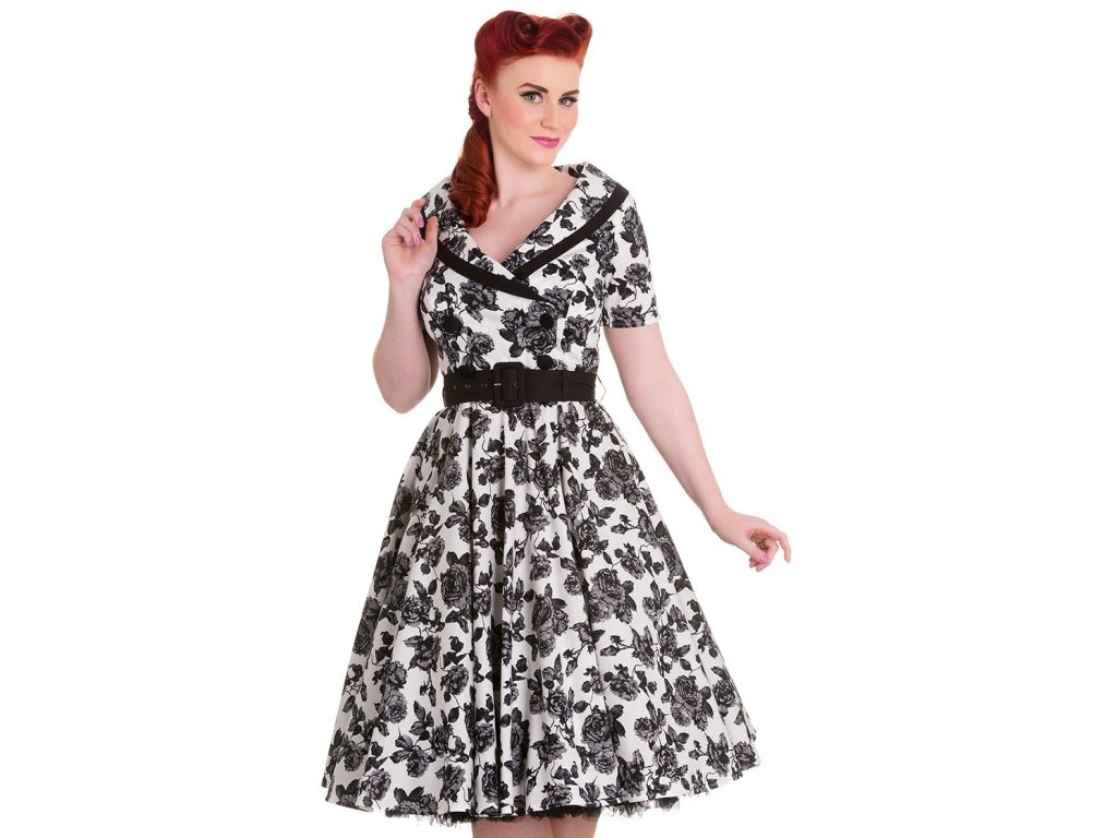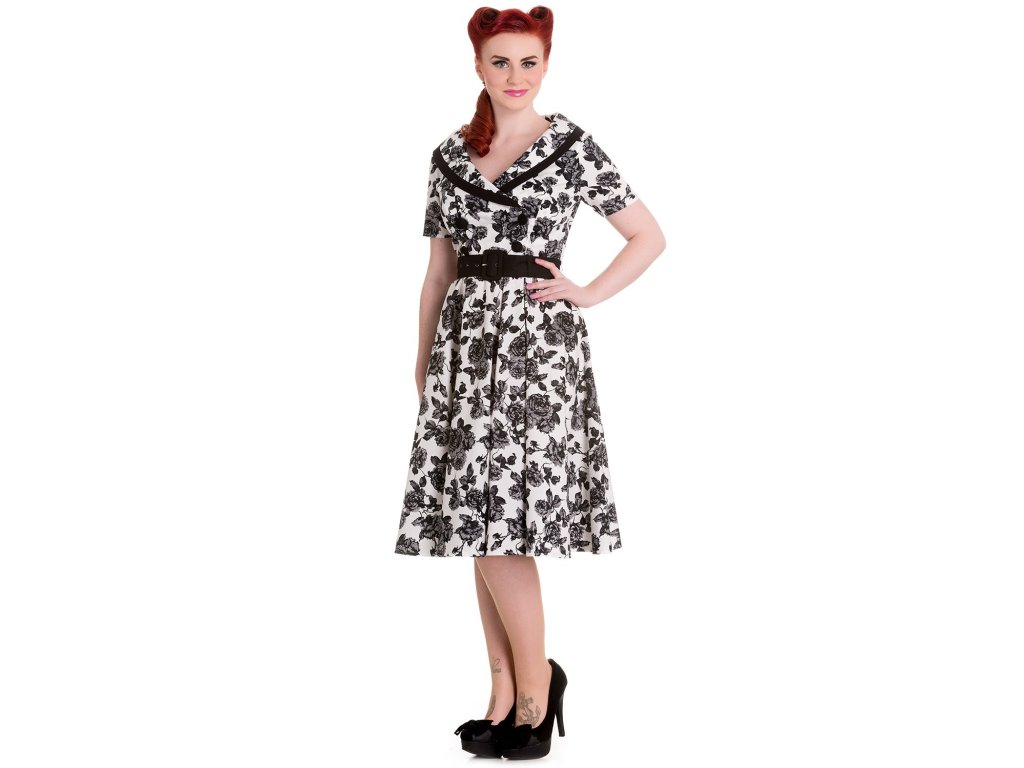 - White grey and black rose print Honor dress by Hell Bunny