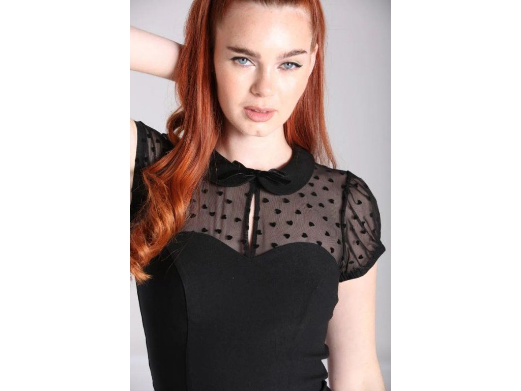 - Elegant mesh fabric on the chest and sleeves with velvet flocked hearts