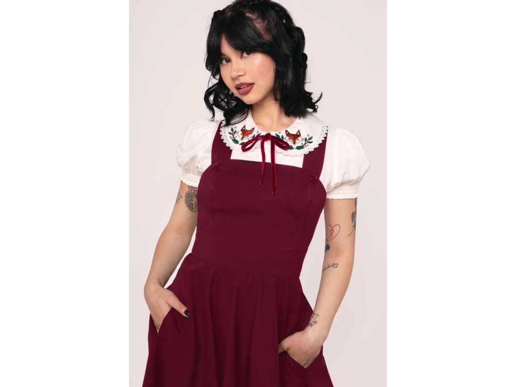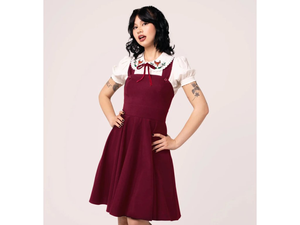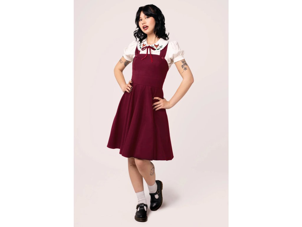 - Burgundy Patti pinafore dress by Hell Bunny