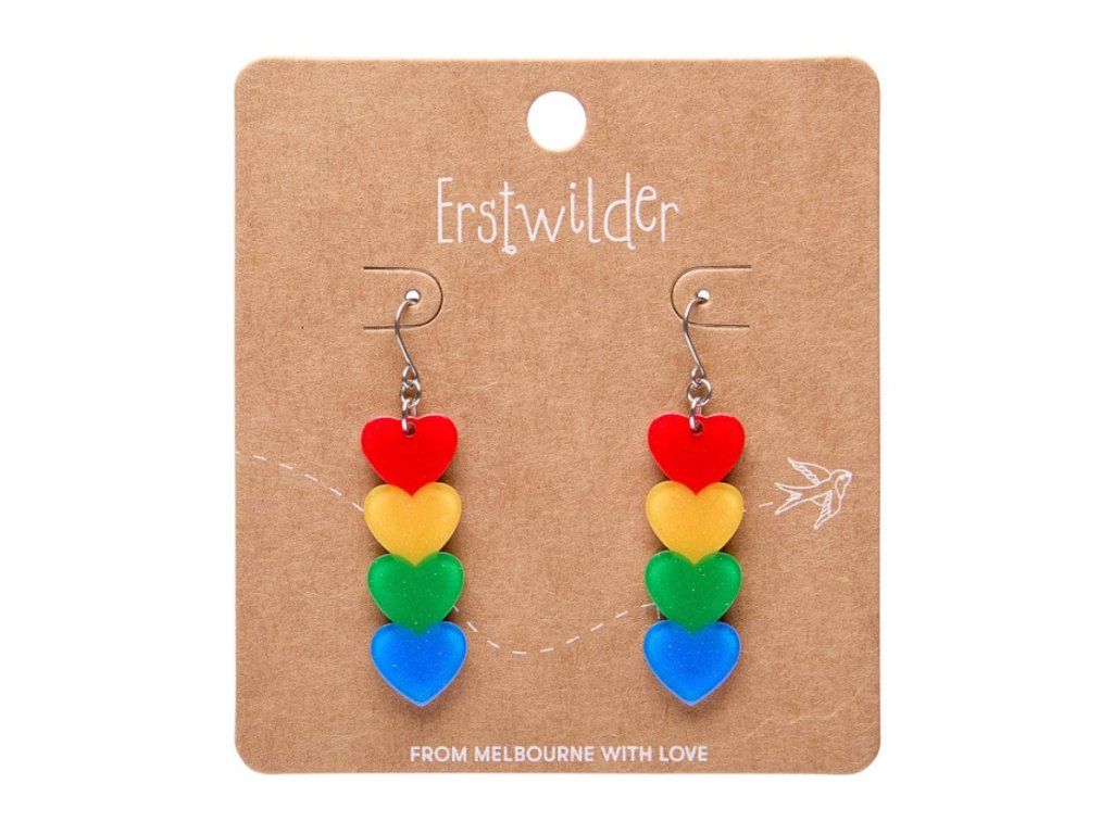 Erstwilder Essentials Drop Earrings Rainbow Hearts. Rainbow Brite 12/2025