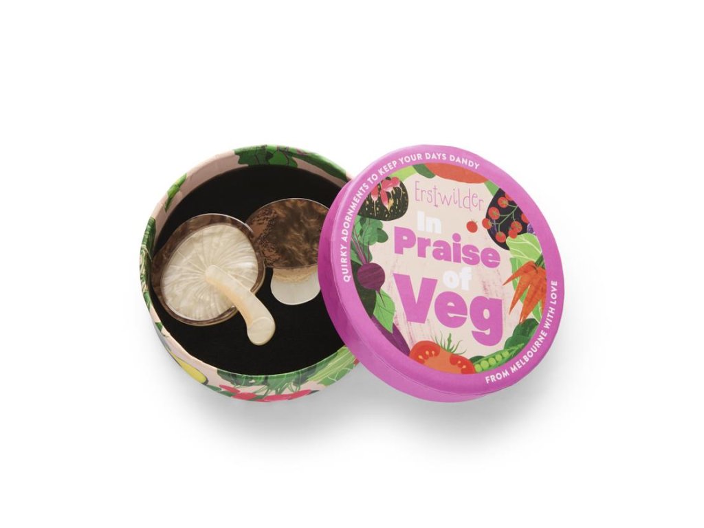 - Brož Mighty Mushie od kultovního australského výrobce Erstwilder - edice In Praise of Veg 10/2025