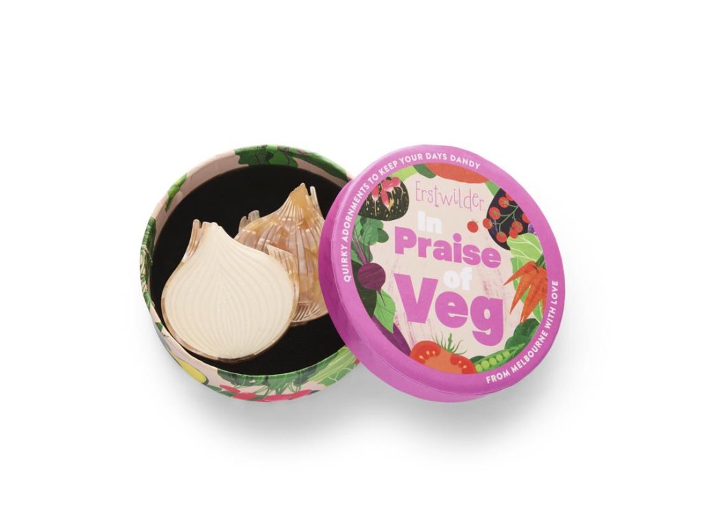 - Brož Onion Layers od kultovního australského výrobce Erstwilder - edice In Praise of Veg 10/2025
