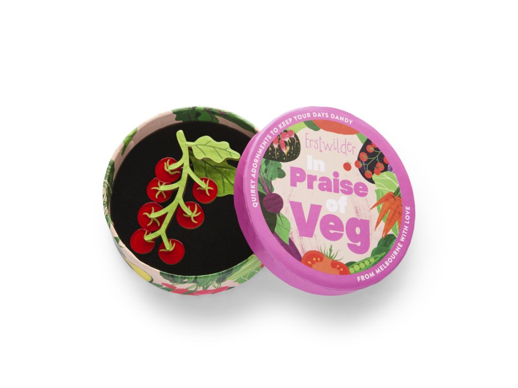 - Brož Vine & Dandy od kultovního australského výrobce Erstwilder - edice In Praise of Veg 10/2025