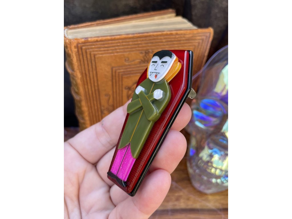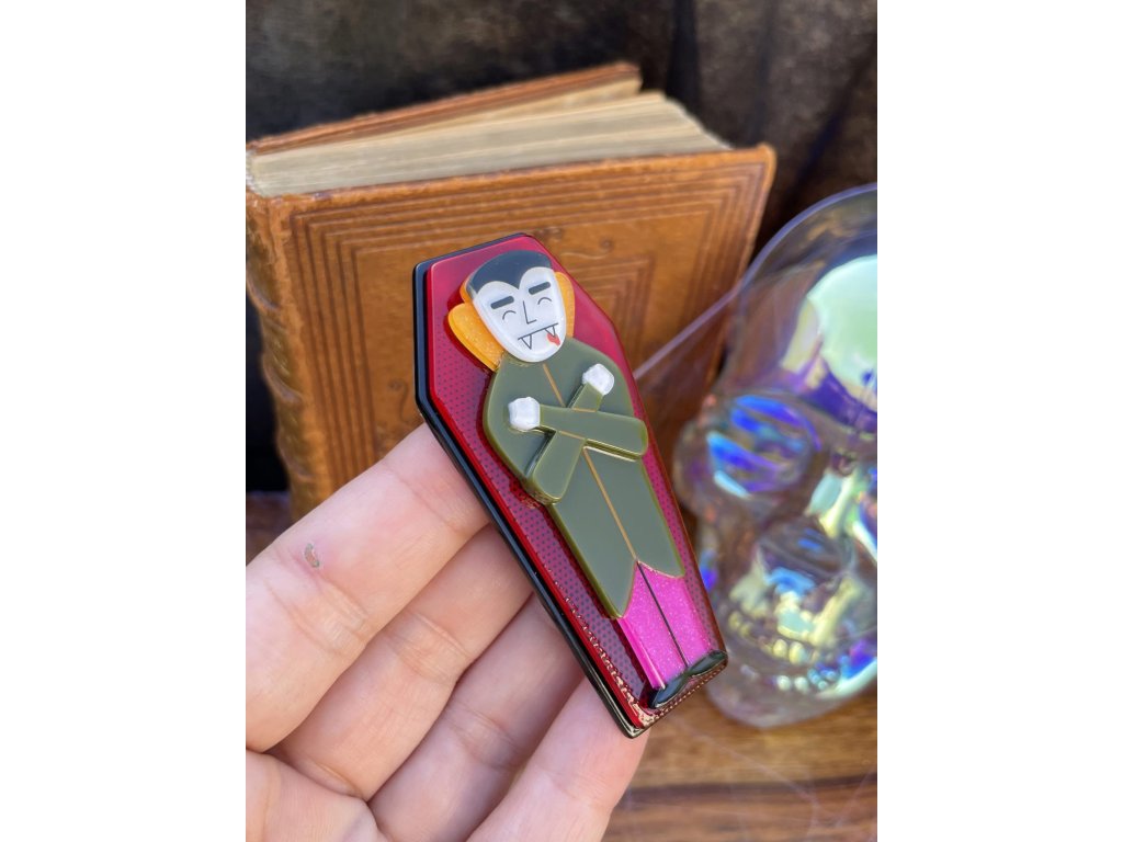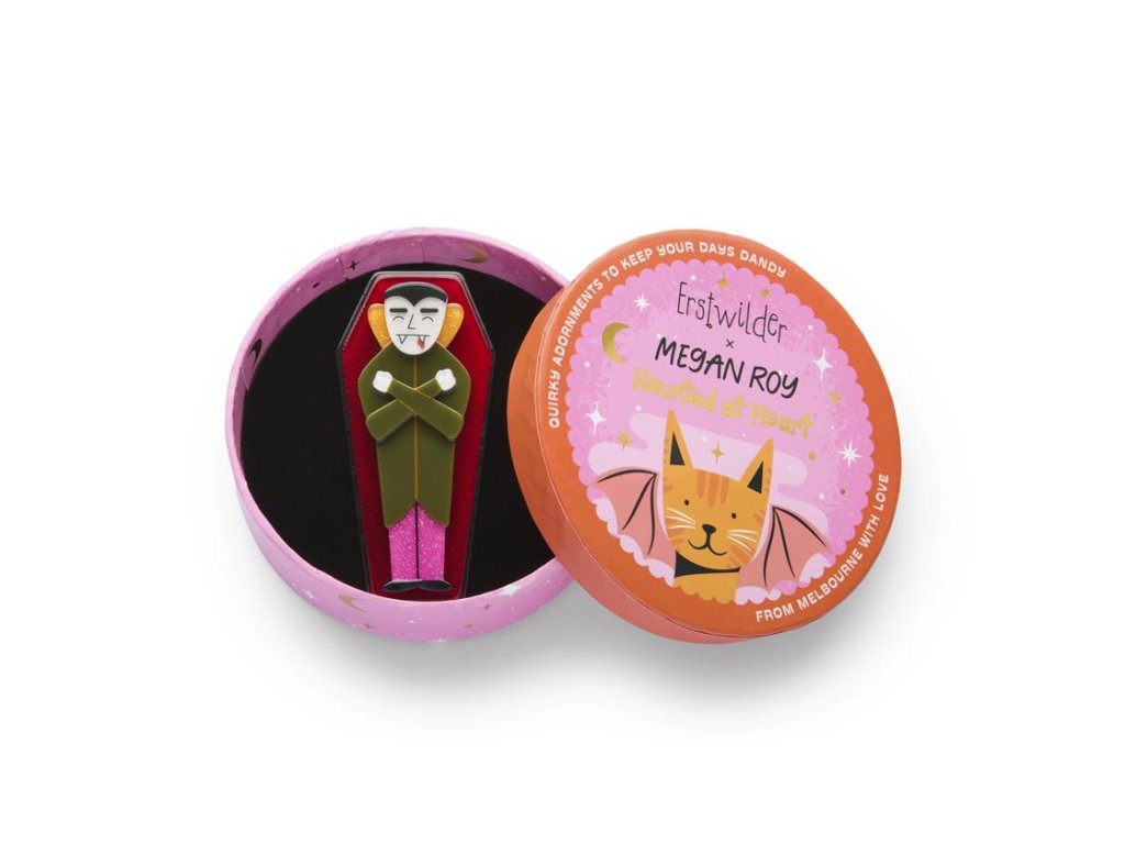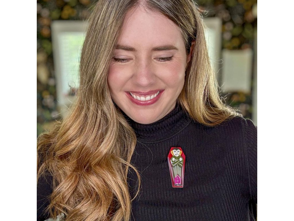 - Brož Cozy Coffin od kultovního australského výrobce Erstwilder - edice Haunted at Heart 09/2025