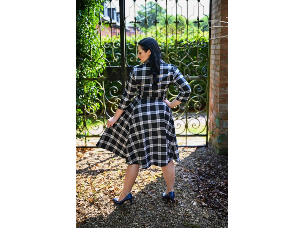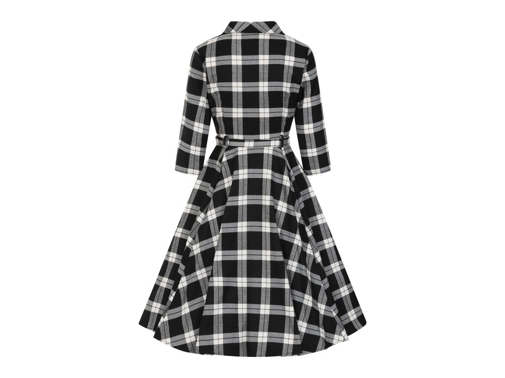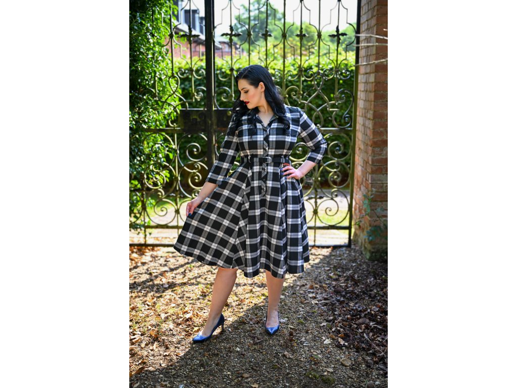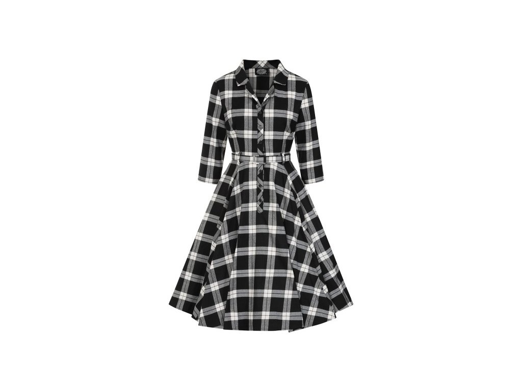 - Košilové retro šaty Lacey s černou a bílou kostkou od značky Hearts & Roses London