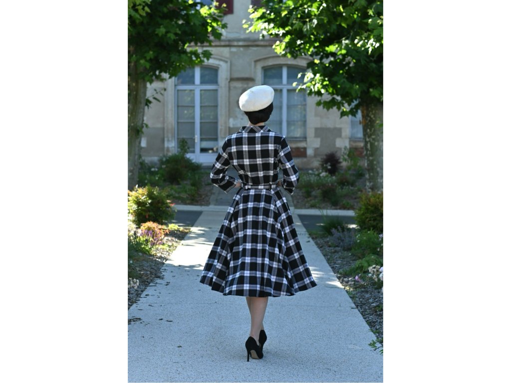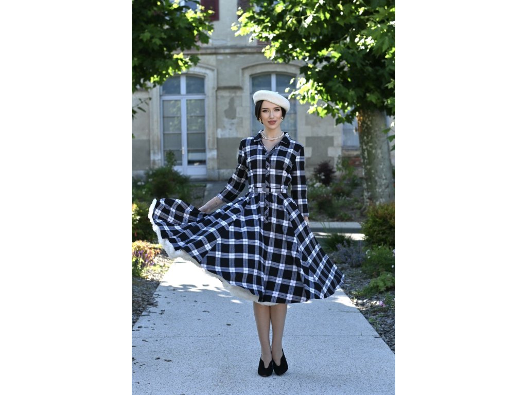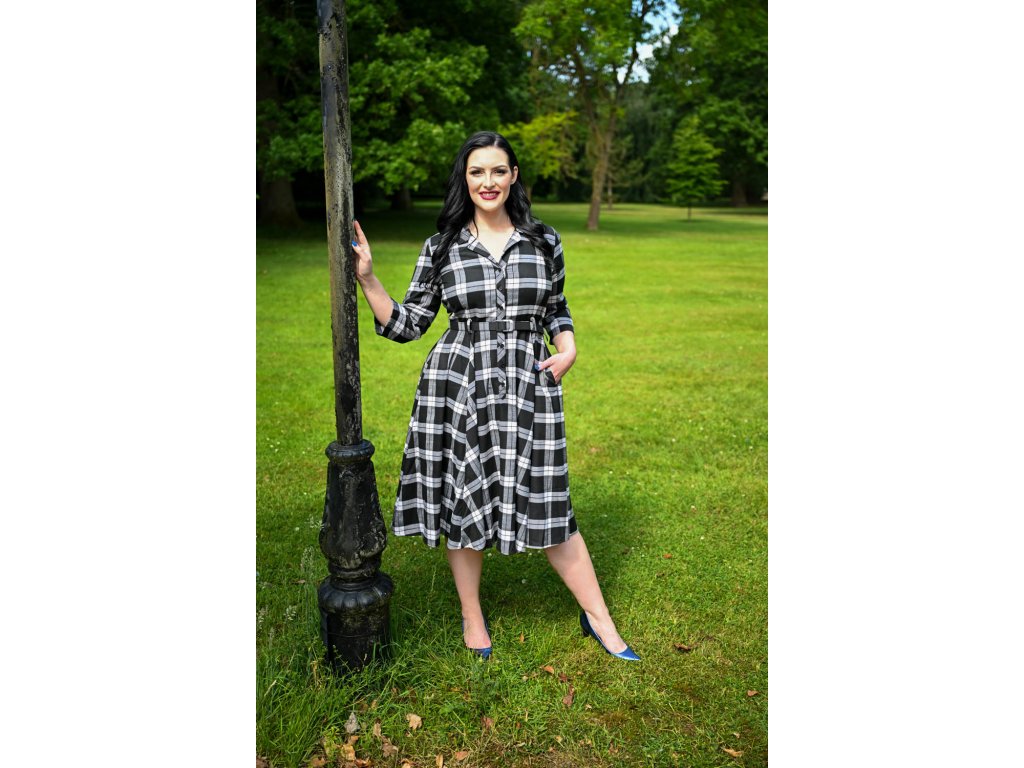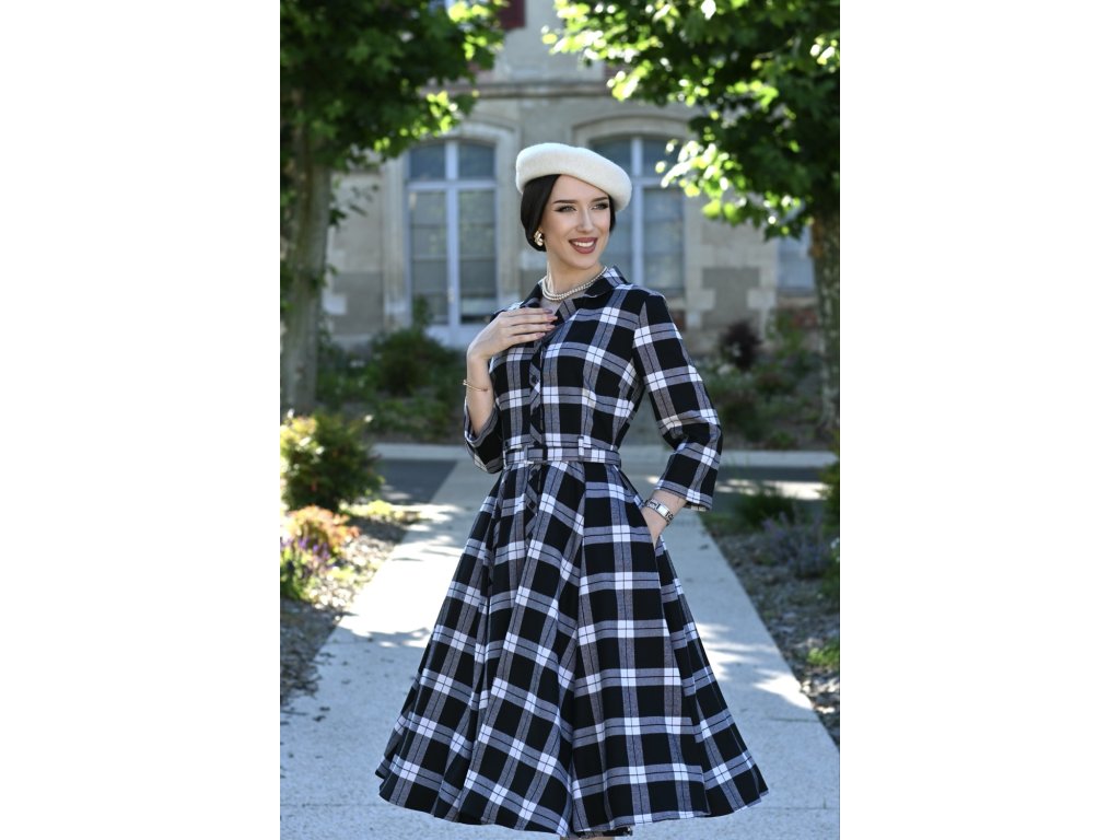 - Košilové retro šaty Lacey s černou a bílou kostkou od značky Hearts & Roses London