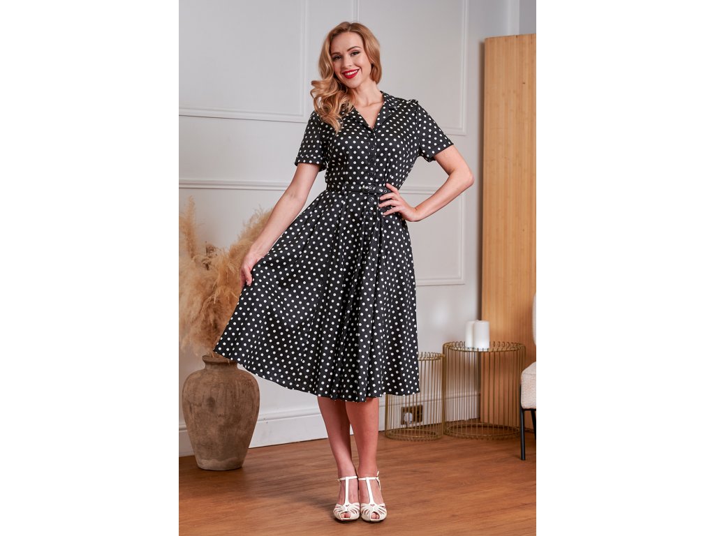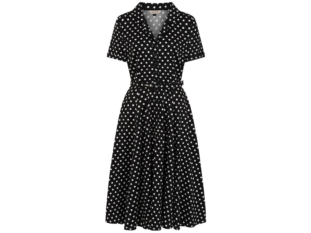 - Košilové retro šaty se středně velkými puntíky, Bella od značky Banned Retro