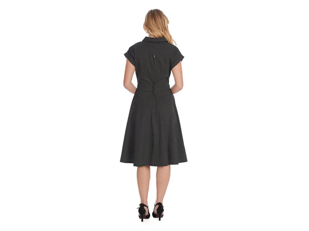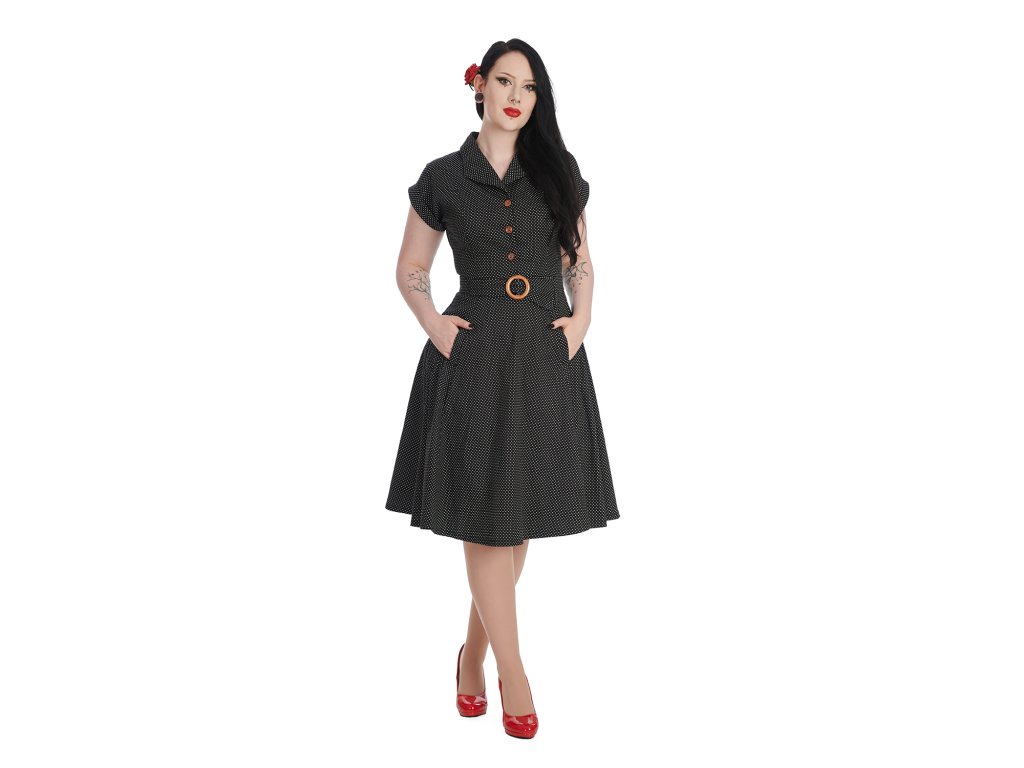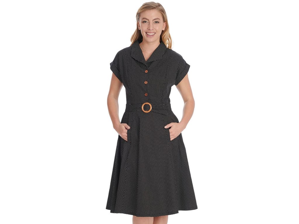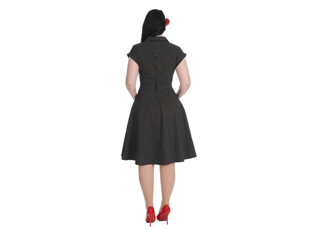 - Černé retro šaty s drobnými bílými puntíky, Polka Dot Dance od značky Banned Retro