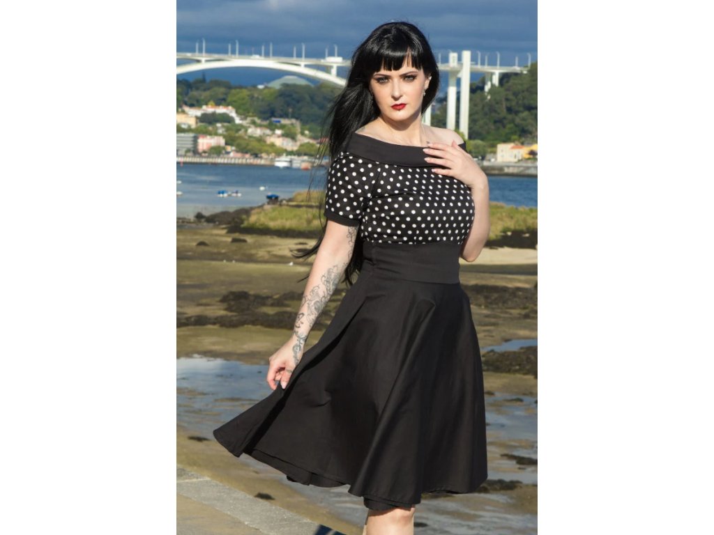 - Černé puntíkované bavlněné retro rockabilly šaty Darlene od značky Dolly and Dotty