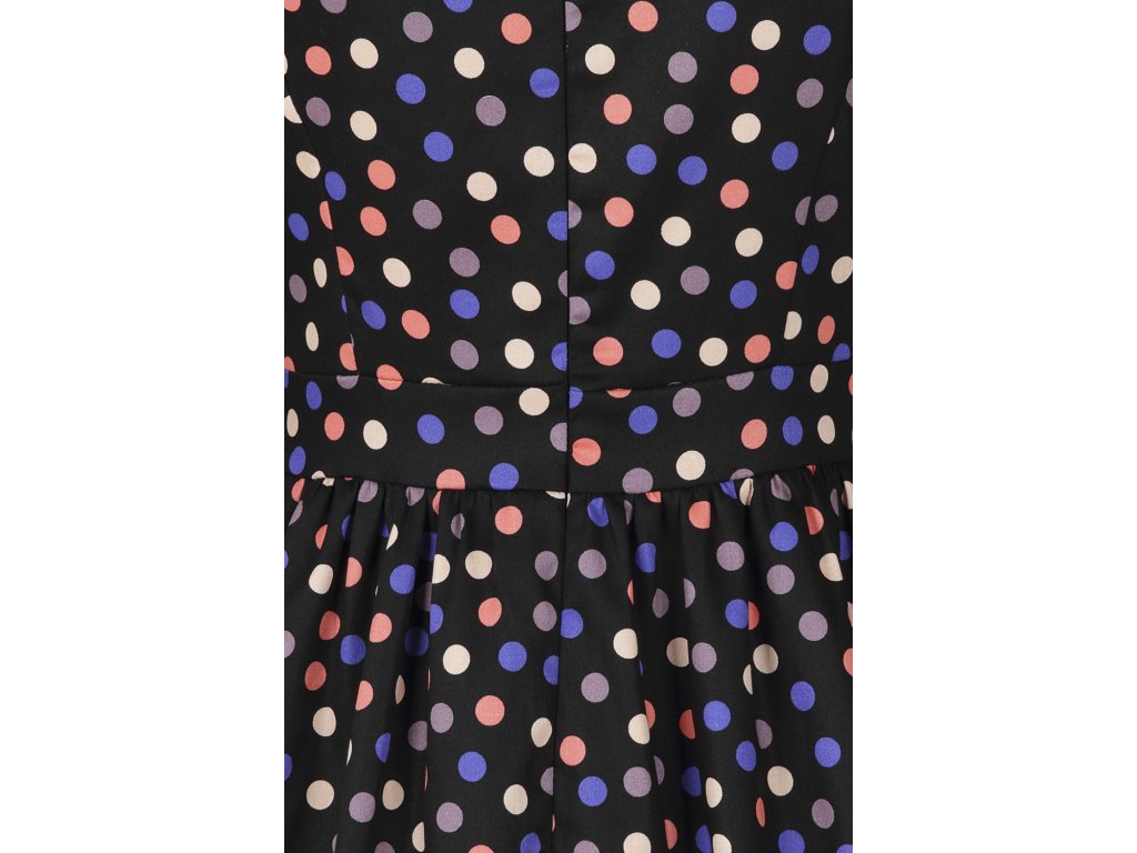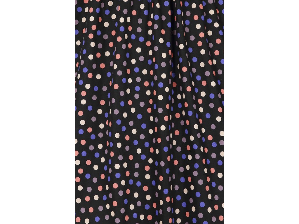 - Puntíky v modré, hnědé, oranžové a krémové barvě na černém podkladu