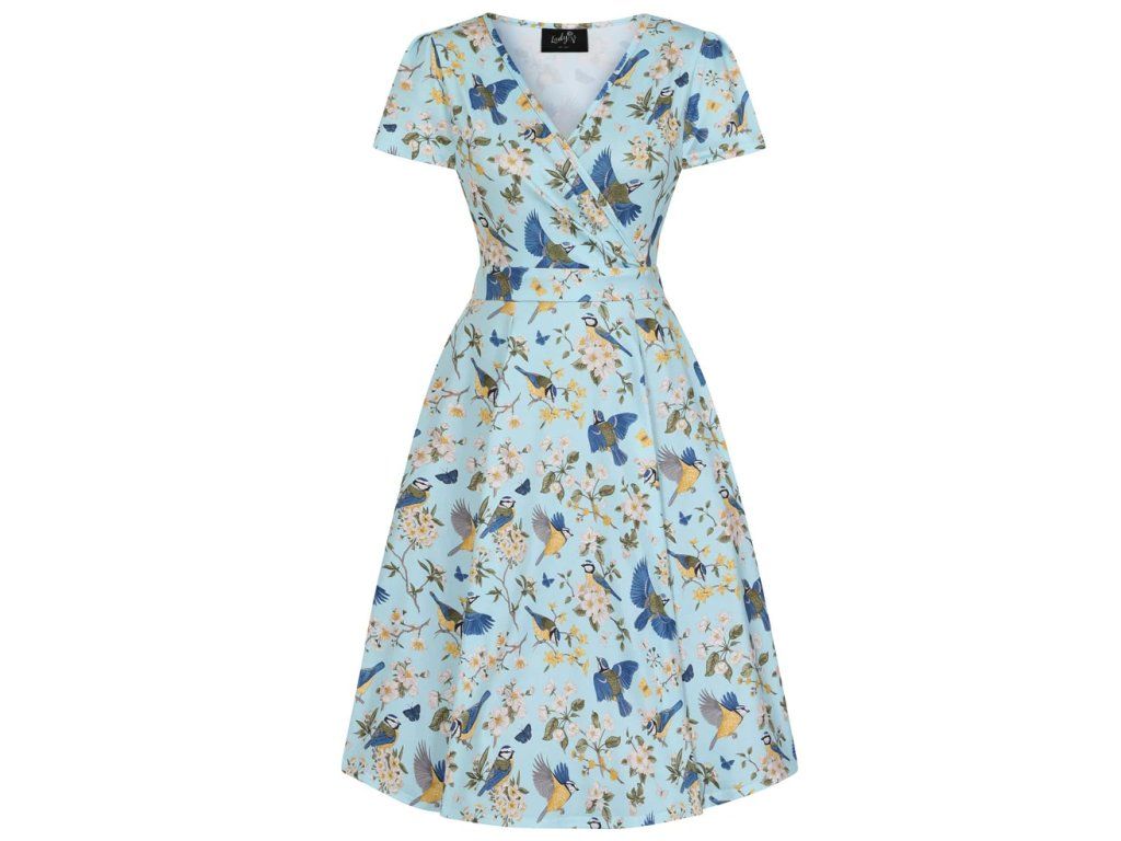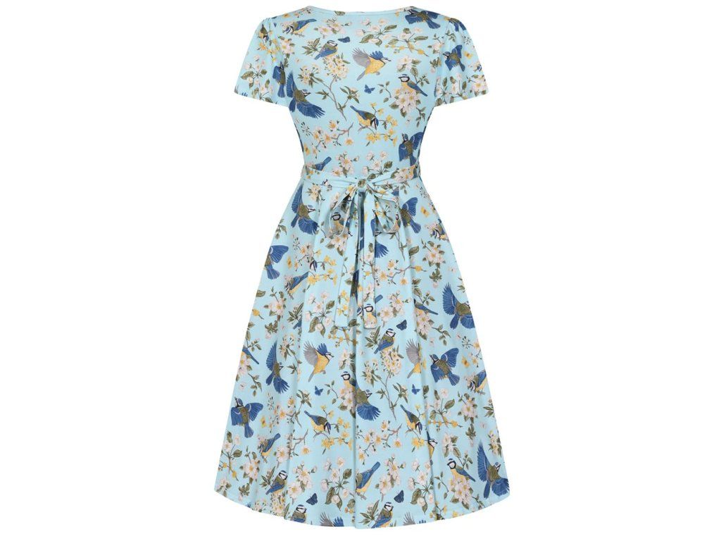 Lady V London retro šaty Lyra Mini - Blue Tits