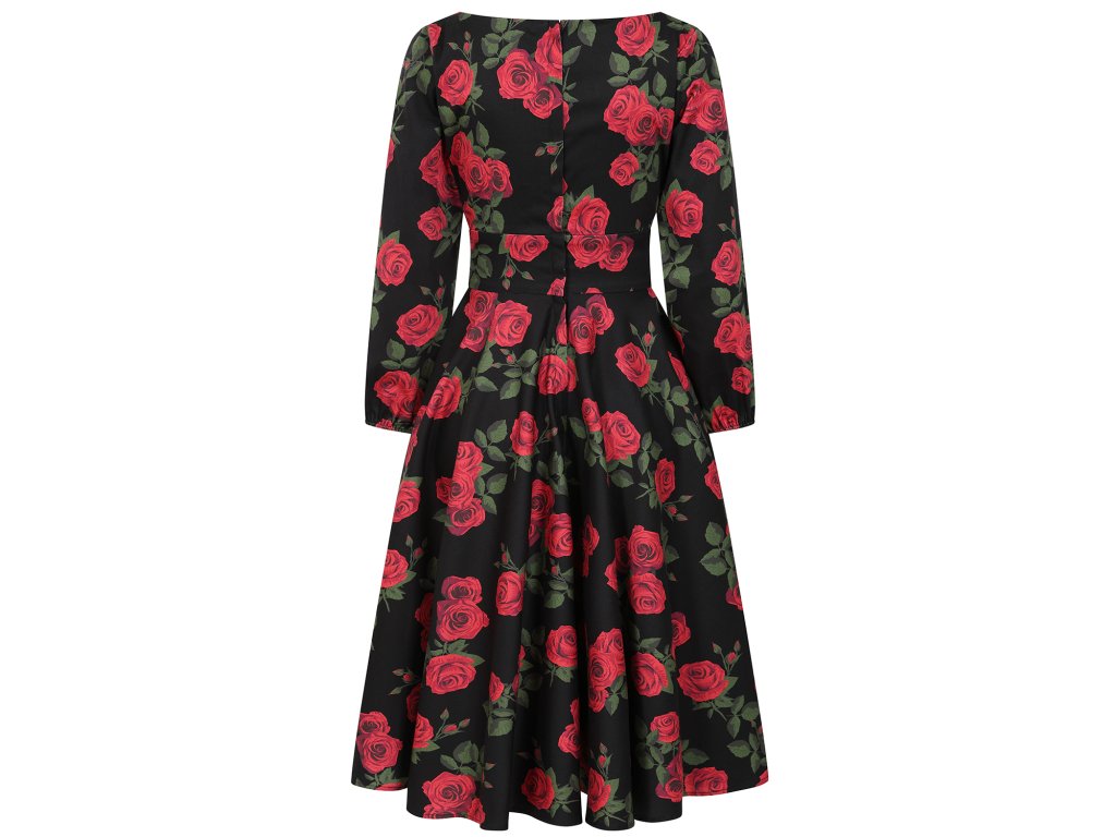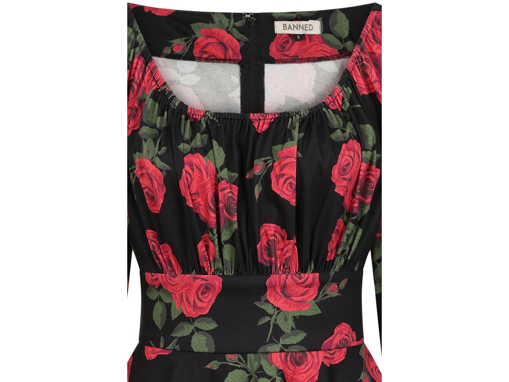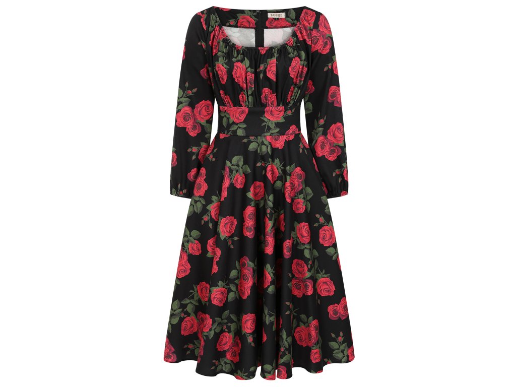 - Černé romantické retro šaty s růžemi, Mina od značky Banned Retro