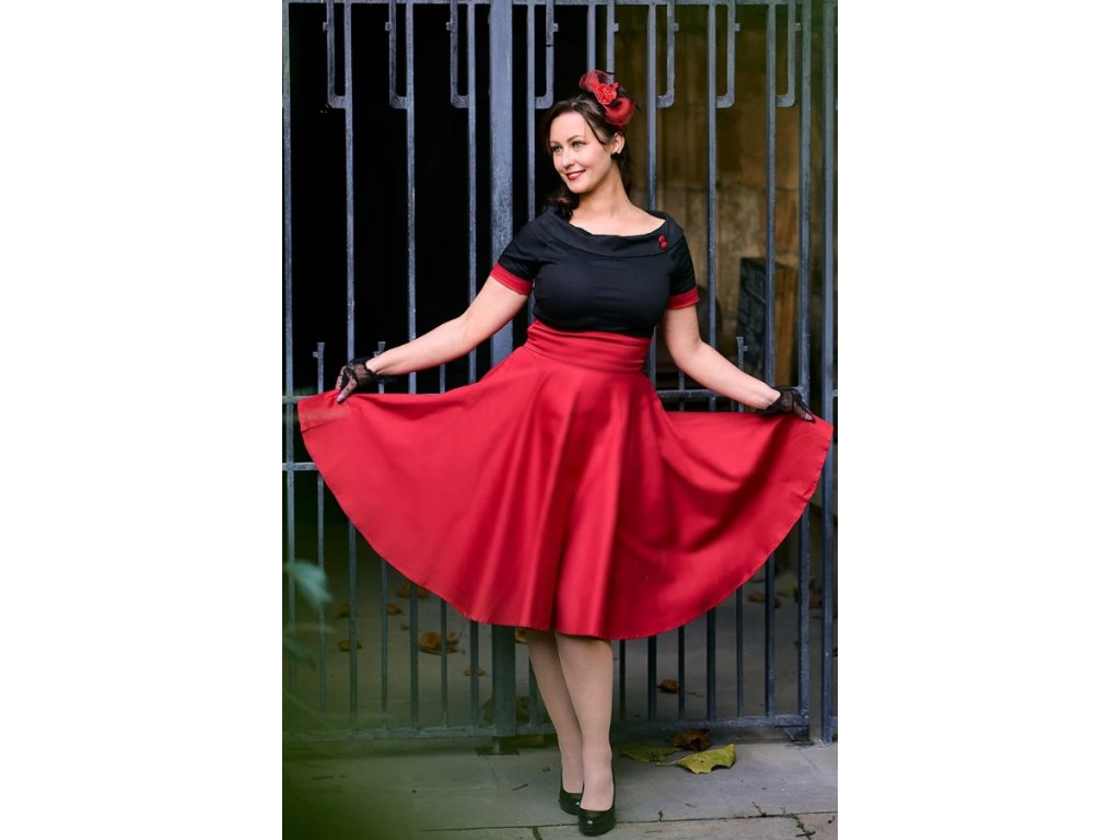 - Červeno-černé bavlněné retro rockabilly šaty Darlene od značky Dolly and Dotty