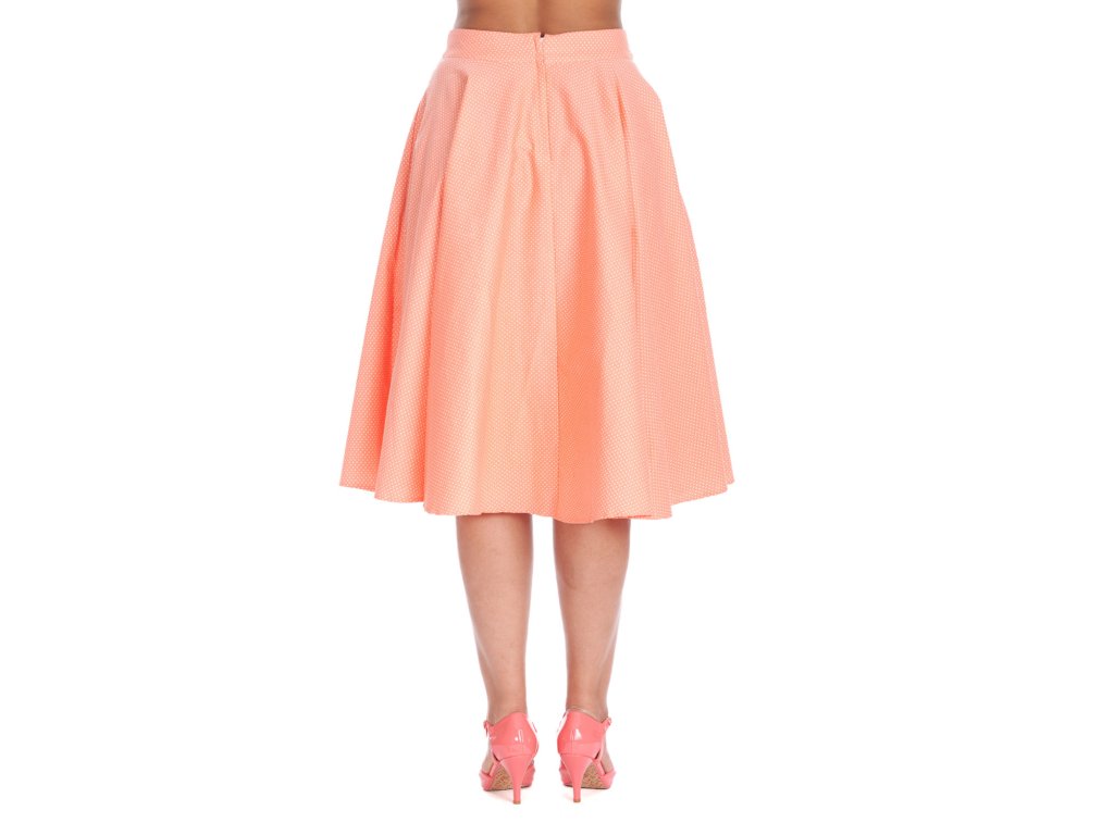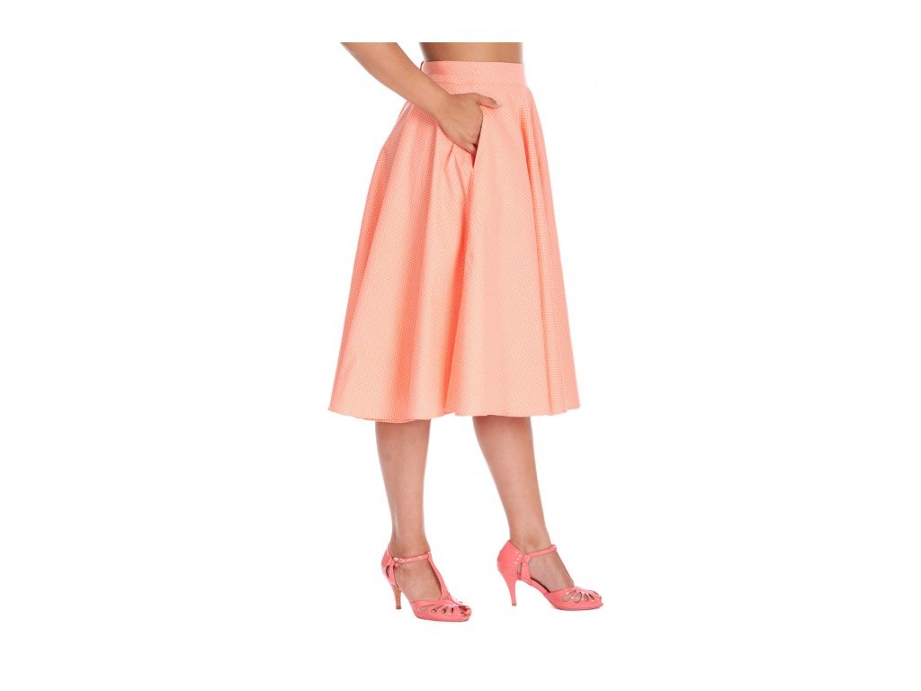 - Meruňková bavlněná kolová retro sukně s drobným bílými puntíky, Mini Polka Queen od značky Banned Retro