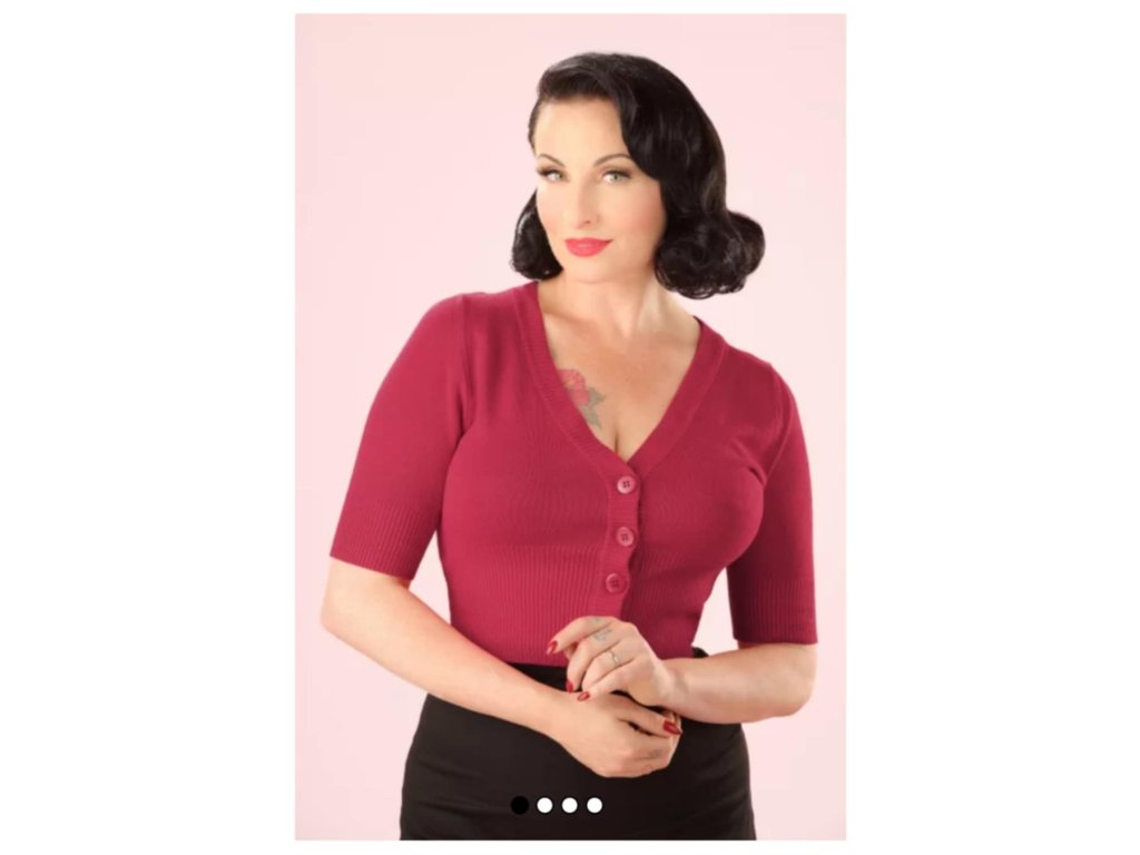 - Krátký bordó retro kardigan do pasu Sweet Dreamer od značky Banned Retro (pozor - nově našitá várka je světlejší než na fotografiích. Reálná barva svetříku je na poslední fotografii)