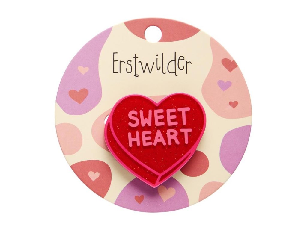 - Mini brož Candy Heart od kultovního australského výrobce Erstwilder - edice Sweet Valentine 1/2026