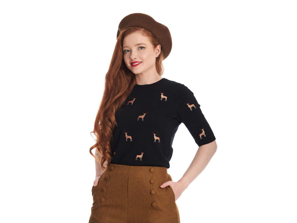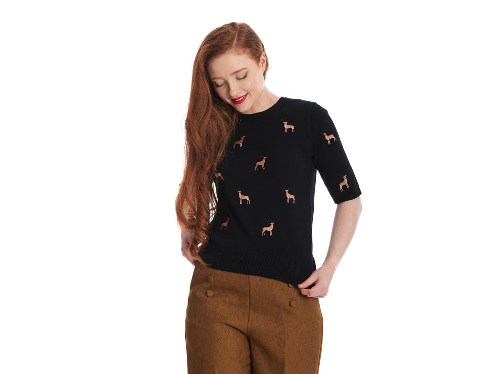 - Černý retro top s tříčtvrtečním rukávem, Sweet Deer od značky Banned Retro