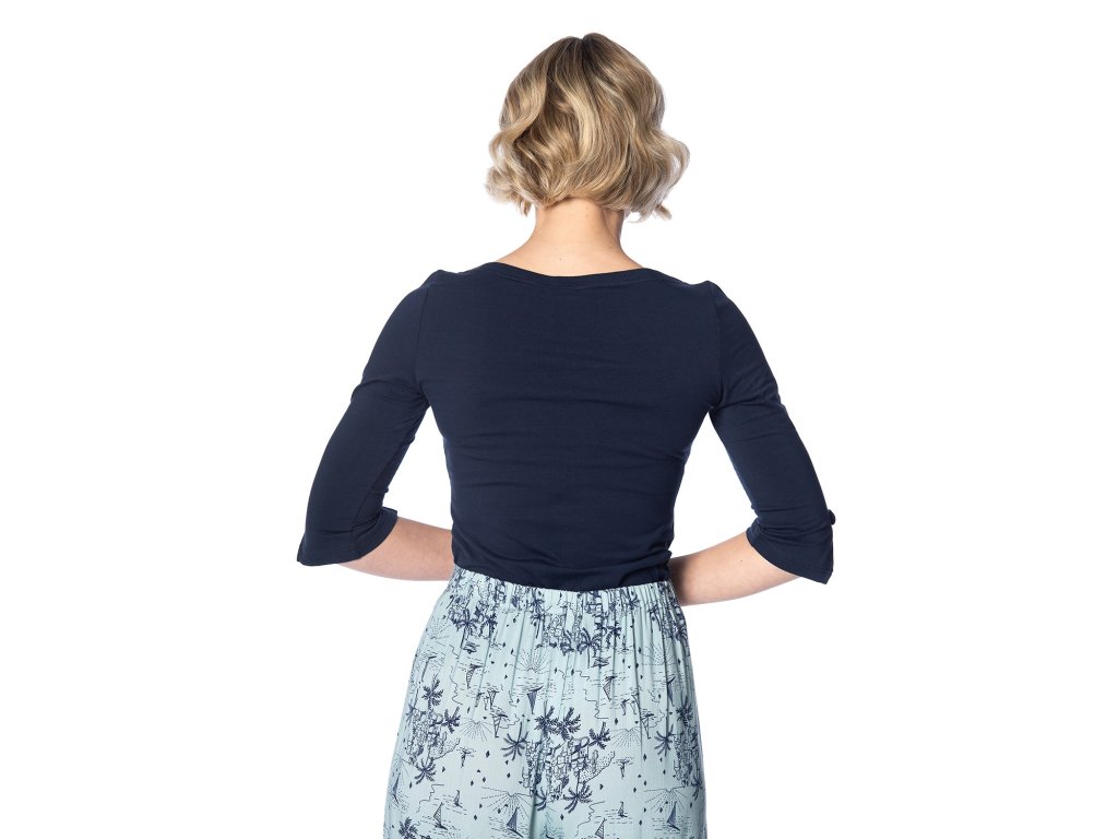 - Tmavě modrý retro top s tříčtvrtečním rukávem Oonagh od značky Banned Retro
