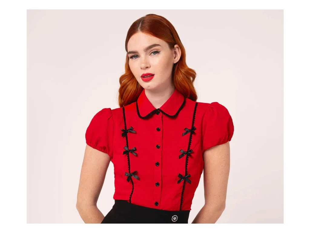 - Polyesterová červená halenka Casey od značky Hell Bunny