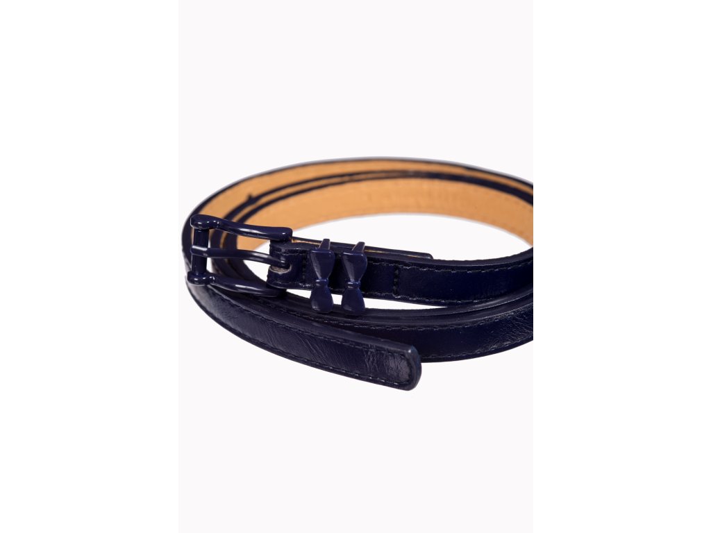 - Úzký tmavě modrý koženkový pásek od značky Banned Retro